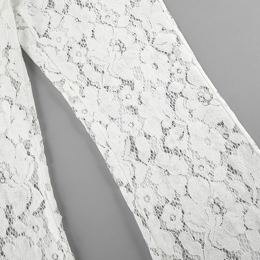 Delicate and airy, these white lace pants bring a fresh romantic twist to your wardrobe. Featuring a flattering flared cut and intricate floral lace, they’re perfect for layering or making a bold summer statement. Lightweight, breathable, and irresistibly feminine.